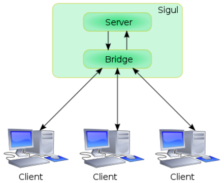 <class>Sigul</class> est une suite logicielle pour un serveur de signature, qui peut signer les RPMs ou de simple ou multiples fichiers. Toutes les clés GPG sont stockés uniquement sur le serveur <class>Sigul</class> (Sigul server), et donc aucun utilisateur n'a accès à aucune clé publique ou privée. Toutes les communications avec le serveur passent par le pont <class>Sigul</class> (Sigul bridge) qui agit comme une passerelle entre le client et le serveur. Cela isole le serveur et interdit tout accès extérieur autre que depuis le pont. Le client <class>Sigul</class>, une fois configuré, autorise les utilisateurs à signer les RPMs avec les clés créées (ou importées) sur le serveur <class>Sigul</class>, en envoyant des commandes au pont, qui lui se chargera de transmettre au serveur.